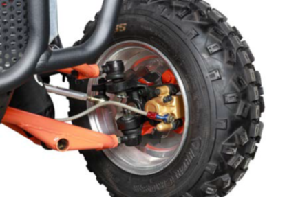 4. Heavy Duty Gusseted Swing Arm with Dual Bearing Axle Carrier and Long Travel Gas Rear Shock